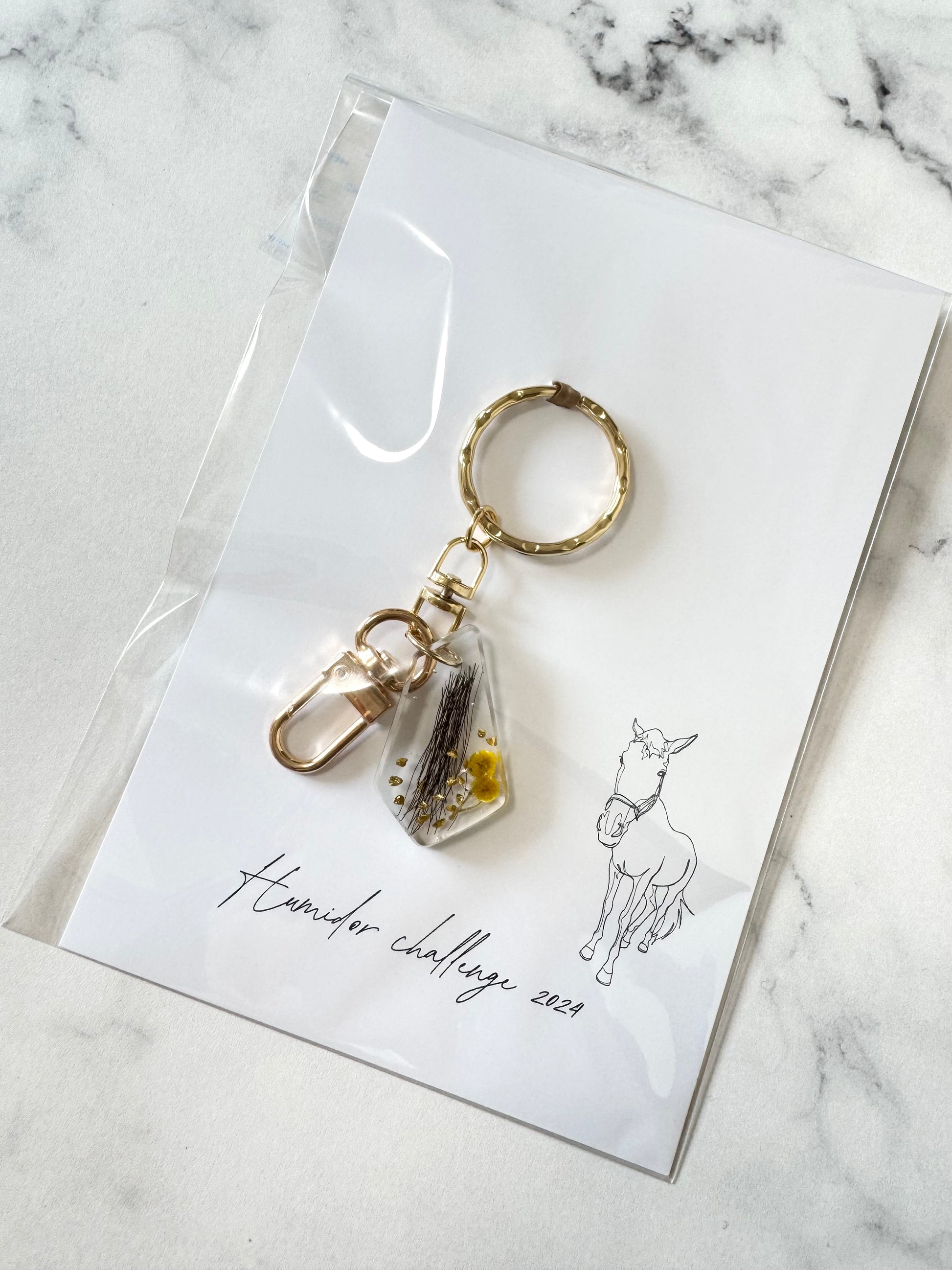 ミモザ入り、ヒュミドールのたてがみキーホルダーです。